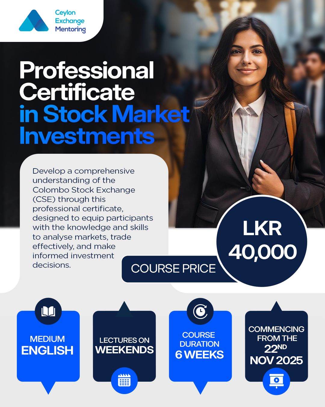CEM Academy, a subsidiary of Ceylon Exchange Mentoring revolves around the courses conducted, which is primarily within the boundaries of investing and personal finance. The catalogue of courses include Stock Market Investing, Fixed Income Securities Investing, Real Estate and Cryptocurrency Investing. As of today we conduct more than 15 courses on a trilingual basis. Since inception, we have catered to over 3000 students to kickstart their investment journey.